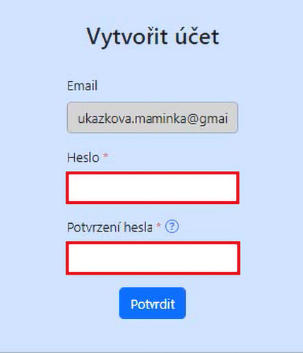Zadejte heslo, kterým se budete přihlašovat do svého účtu, a potvrďte jej.